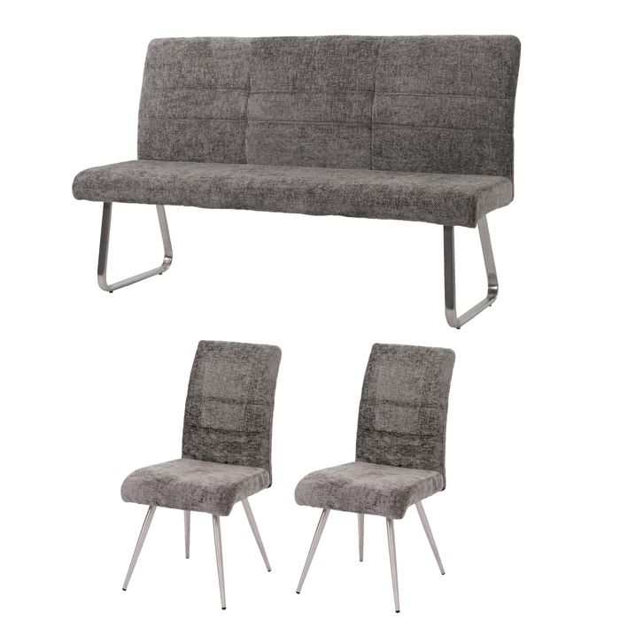Esszimmer-Set HWC-G55, 2er-Set Stuhl + Sitzbank 160cm, Edelstahl gebürstet Stoff/Textil Chenille – dunkelgrau