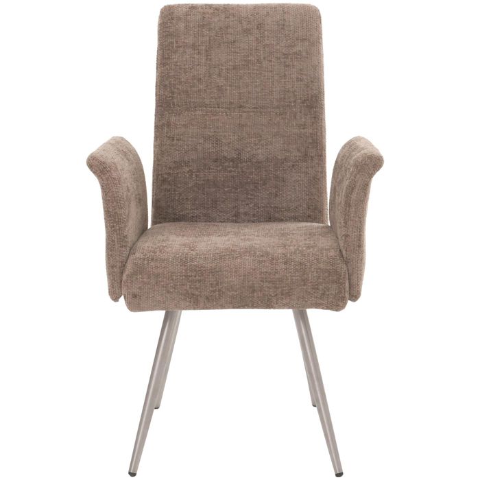 Esszimmer-Set HWC-G55, 4er-Set Stuhl mit Armlehne+Sitzbank 160cm, Edelstahl gebürstet Stoff/Textil Chenille – braun