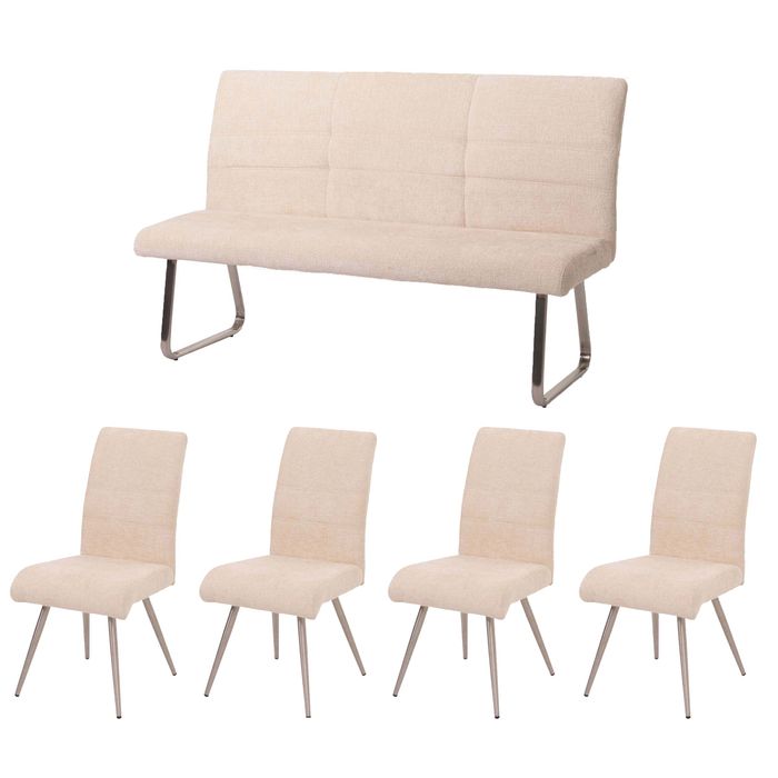 Esszimmer-Set HWC-G55, 4er-Set Stuhl + Sitzbank 160cm, Edelstahl gebürstet Stoff/Textil Chenille – creme