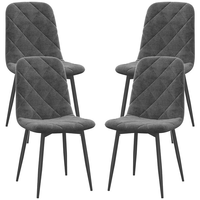 Erleben Sie mit den HOMCOM Esszimmerstühlen eine perfekte Mischung aus Komfort und Stil. Der luxuriöse, samtweiche Stoff und die stabile Rückenstütze mit Polstersitz garantieren höchsten Sitzkomfort. Die robuste Konstruktion des Polsterstuhls mit pulverbeschichtetem Stahlrahmen und Bodenschonern bewahrt Ihre Fussböden vor Kratzern und ihr schlichtes, modernes Design mit feiner Steppung macht sie zum eleganten Blickfang in jedem Raum.