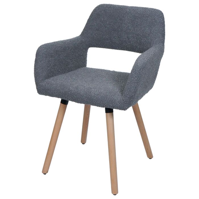 Esszimmerstuhl HWC-A50 II, Stuhl Küchenstuhl Polsterstuhl, Holz Stoff/Textil Bouclé (450g/m²) MVG - dunkelgrau