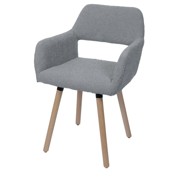 Esszimmerstuhl HWC-A50 II, Stuhl Küchenstuhl Polsterstuhl, Holz Stoff/Textil Bouclé (450g/m²) MVG - grau