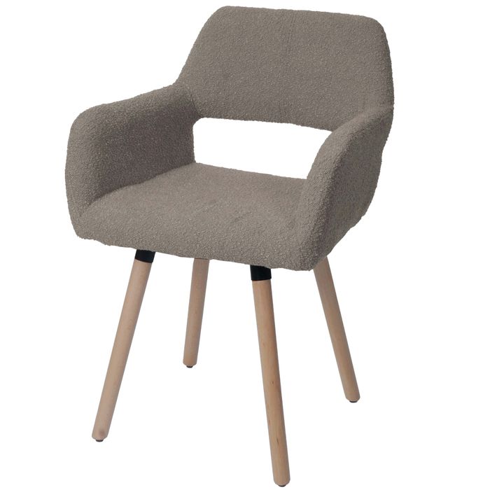 Esszimmerstuhl HWC-A50 II, Stuhl Küchenstuhl Polsterstuhl, Holz Stoff/Textil Bouclé (450g/m²) MVG - taupe