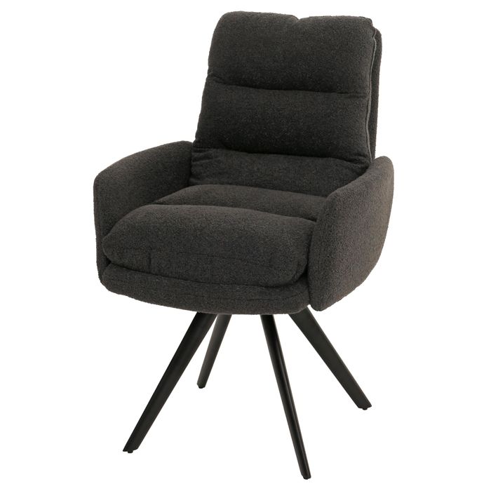 Esszimmerstuhl HWC-G66, Küchenstuhl Stuhl, drehbar Auto-Position Stoff/Textil Bouclé MVG - dunkelgrau, mit Armlehne