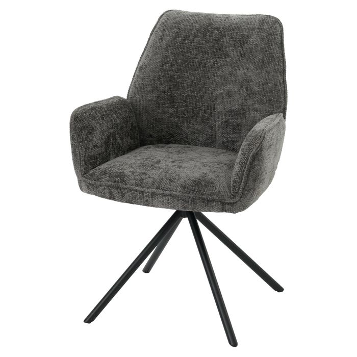 Esszimmerstuhl HWC-G67, Küchenstuhl Stuhl mit Armlehne, drehbar Auto-Position, Chenille Öko-Tex MVG - dunkelgrau