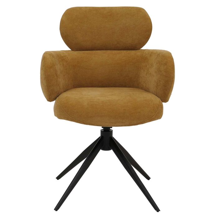 Esszimmerstuhl HWC-O77, drehbar Auto-Return, Stoff (310g/m²) Chenille Öko-Tex – senfgelb