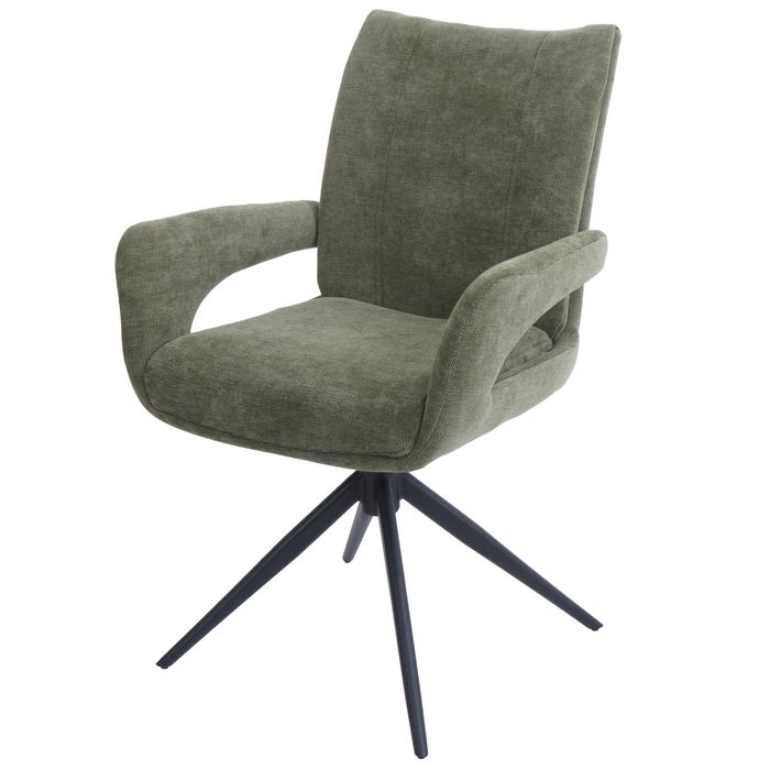 Esszimmerstuhl HWC-O78, drehbar Auto-Return, Stoff/Textil Chenille (310g/m²) Öko-Tex – grün