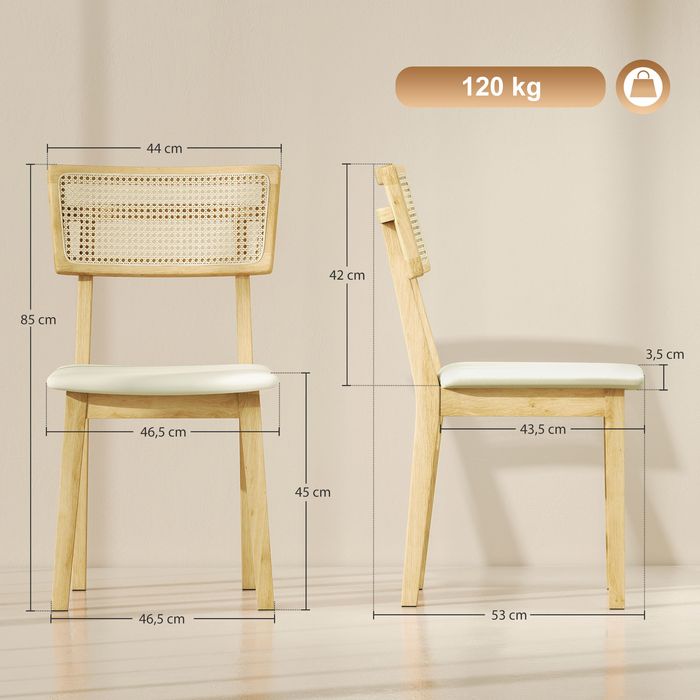 - ✔ Atmungsaktives Rattan-Rückenteil verleiht dem Esszimmerstuhl Stil und Komfort