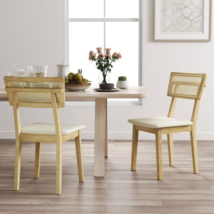 - Atmungsaktive Rattan-Rückenlehne: Dieser elegante Esszimmerstuhl im Rattan-Stil ist leicht und luftig, um Sie kühl und unterstützt zu halten und bringt einen Hauch von Eleganz in Ihre entspannten Familienessen oder geselligen Runden zu Hause.
