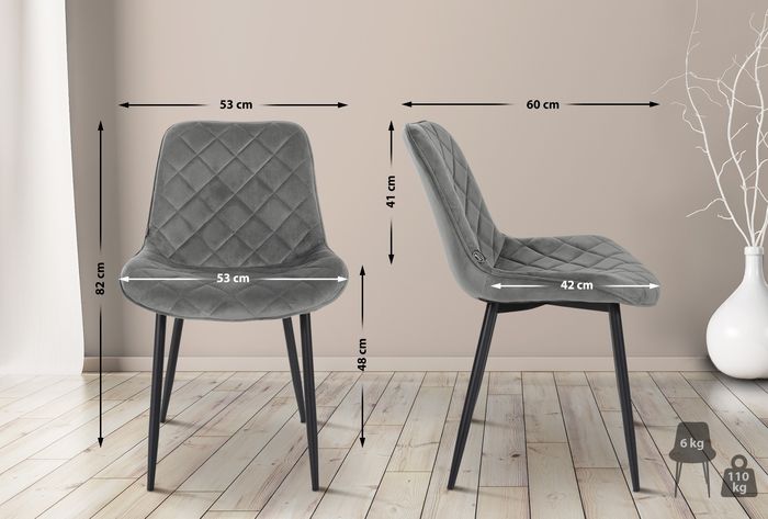 Der Stuhl Springs mit Samtbezug bereichert wohnlich moderne Räumlichkeiten perfekt und zieht in jedem Raum die Blicke auf sich. Mit seiner komfortablen Rückenlehne und der gesteppten Polsterung ermöglicht er auch langanhaltenden Sitzkomfort. Die Verwendung pflegeleichter Materialien gewährleistet eine mühelose Reinigung des Esszimmerstuhls zu jeder Zeit. Getragen von einem zeitgemässen 4-Fuss Metallgestell präsentiert sich der Stuhl bei jeder Gelegenheit vorteilhaft. Zudem sind Bodenschoner an den Füssen angebracht, um den Boden vor Kratzern zu schützen.