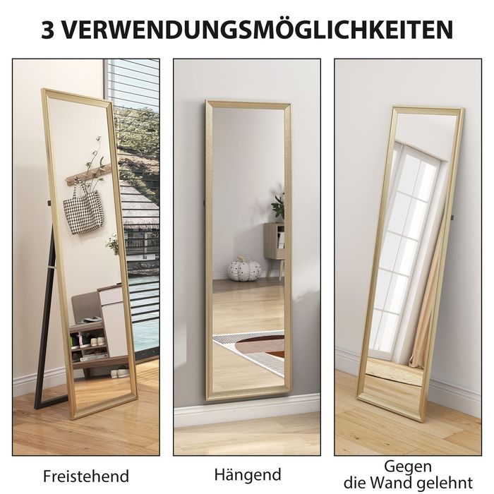 Ganzkörperspiegel, flexibel platzierbar, 160 x 50 cm, Goldton