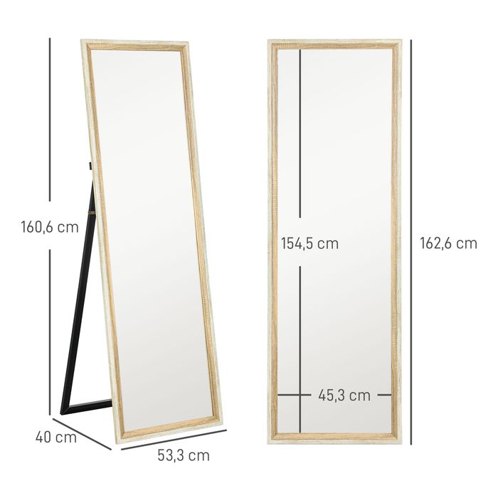 Ganzkörperspiegel, MDF-Rahmen, splitterfreie Folie, 162,6 x 53,3 cm, Naturholz