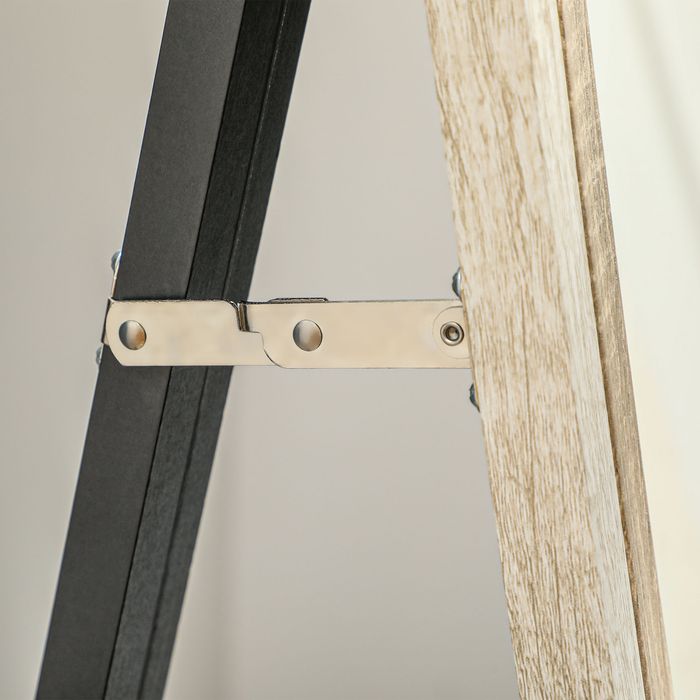 - Zweifarben-Eleganz: Umrahmt in einer ansprechenden Kombination aus weissem und naturem Holzdekor, verleiht dieser freistehende Spiegel jedem Schlafzimmer oder Ankleidebereich einen eleganten Akzent.