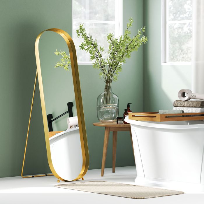 - Einfaches und elegantes Design: Der hochwertige, goldfarbene Bogenrahmen erweitert die optische Höhe des Standspiegels und verleiht Ihrem Wohnbereich einen Hauch von Eleganz und Stil