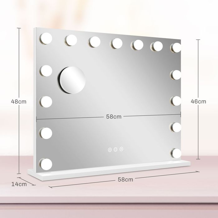 LED-Kosmetikspiegel, 3 Lichtmodi, dimmbar, Touch-Steuerung, USB, 58x48cm, Weiss