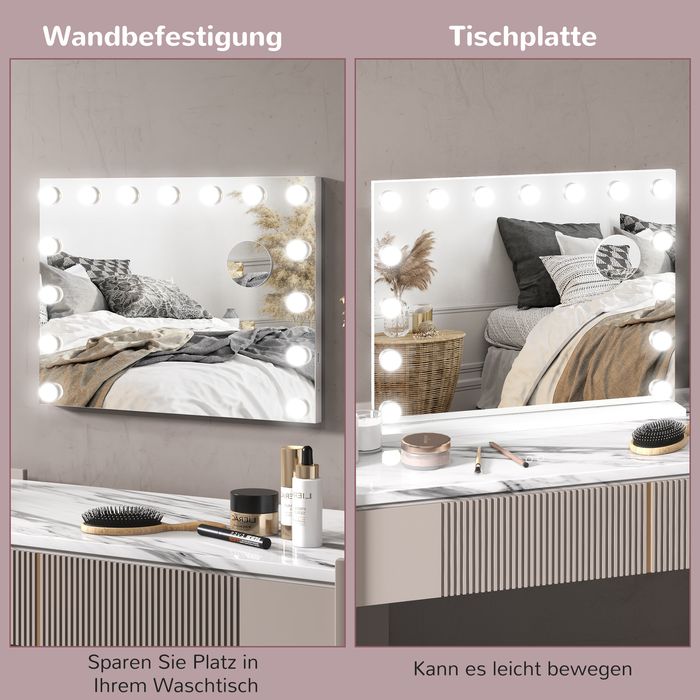 - Perfekte Sicht mit optimaler Beleuchtung: Dieser LED Kosmetikspiegel bietet mit seinen Massen von 58 x 48 cm und 15 LED-Lampen eine vollständige Gesichtsansicht, ideal für detaillierte Make-up-Anwendungen. Mit einer beeindruckenden Lebensdauer von 50.000 Stunden gewinnen Sie stets perfekte Lichtverhältnisse
