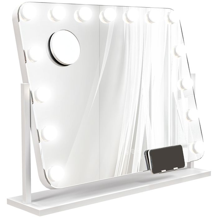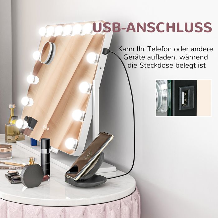 - Integrierte Handyhalterung und USB-Anschluss des Tischspiegels für zusätzlichen Komfort