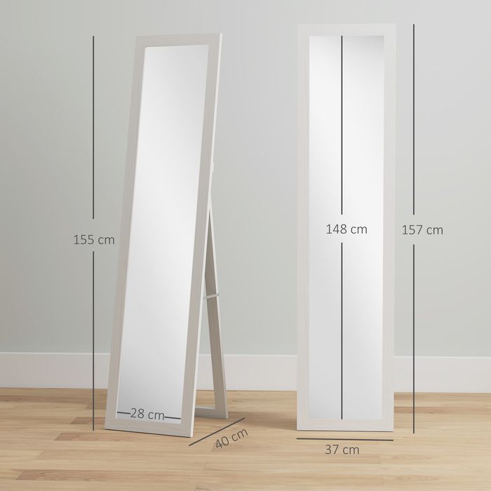 Standspiegel, mit Ständer, freistehend, 37x157cm, Weiss