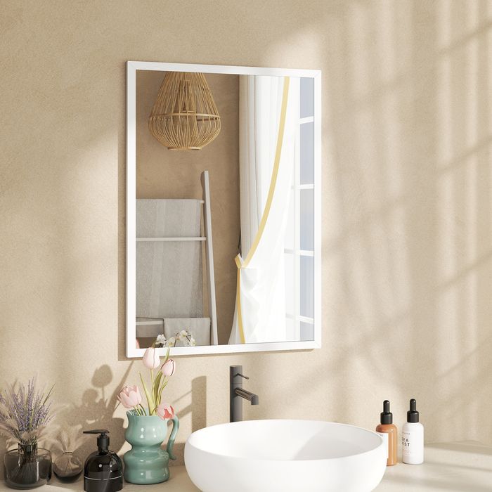 - Elegantes Design: Dieser stilvolle rechteckige Wandspiegel mit weissem Holzrahmen fügt sich harmonisch in jedes Interieur ein und verleiht Ihrem Raum Charme und Wärme
