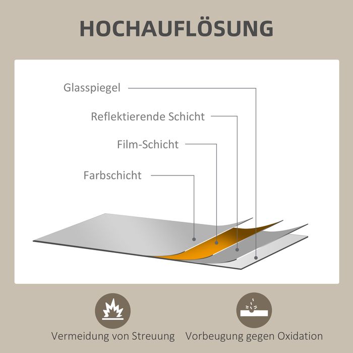 - Robust und langlebig: Der Spiegel ist kratzfest und mit einem stabilen MDF-Rahmen versehen, der für zusätzliche Stabilität sorgt und Ihnen lange Freude bereitet