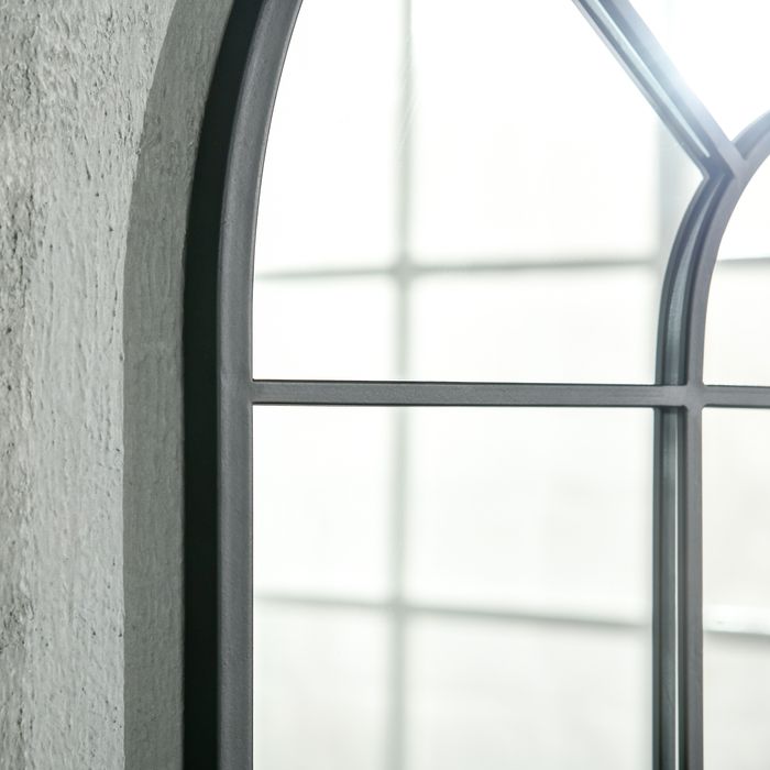 Wandspiegel Bogenfenster-Spiegel 91 x 60 cm Wohnzimmerspiegel für Schlafzimmer, Esszimmer, Flur Schwarz Metall Glas