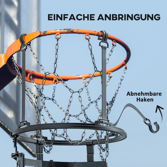 Verbessern Sie Ihre Basketballfähigkeiten mit dem SPORTNOW Basketball-Rebounder! Passend für jeden Korb, bieten die verstellbaren Riemen des Basketball-Rückholsystems flexible Höheneinstellungen. Mit der 360° Drehfunktion trainieren Sie Würfe aus allen Richtungen, ideal für Sprung- und Dreipunktwürfe. Einfach und schnell mit abnehmbaren Haken zu befestigen, hält der Basketball-Rücklaufaufsatz auch stärksten Belastungen stand und sorgt dafür, dass der Ball nach einem erfolgreichen Treffer wieder