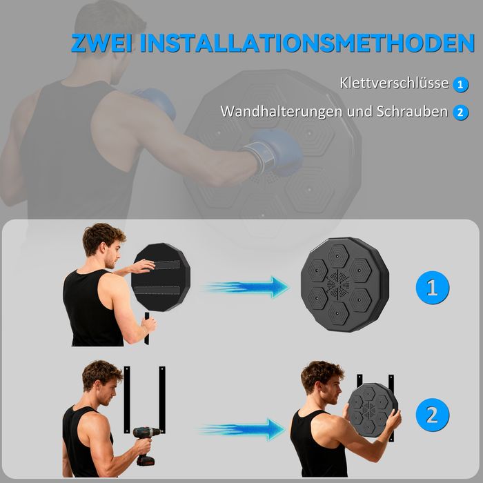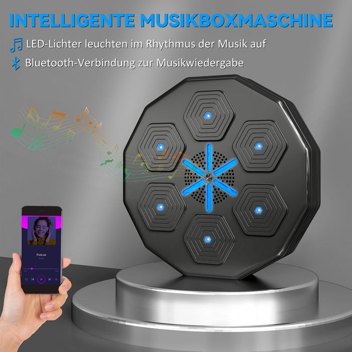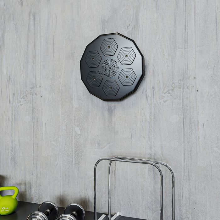 Boxtrainer mit Musikfunktion, Bluetooth, leuchtende Punkte, Wandaufhängung, Kunstleder, Schwarz