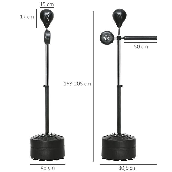 Höhenverstellbarer Punchingball, 360° drehbar, inkl. Boxbandagen, Schwarz, 80,5 x 48 x 163-205 cm
