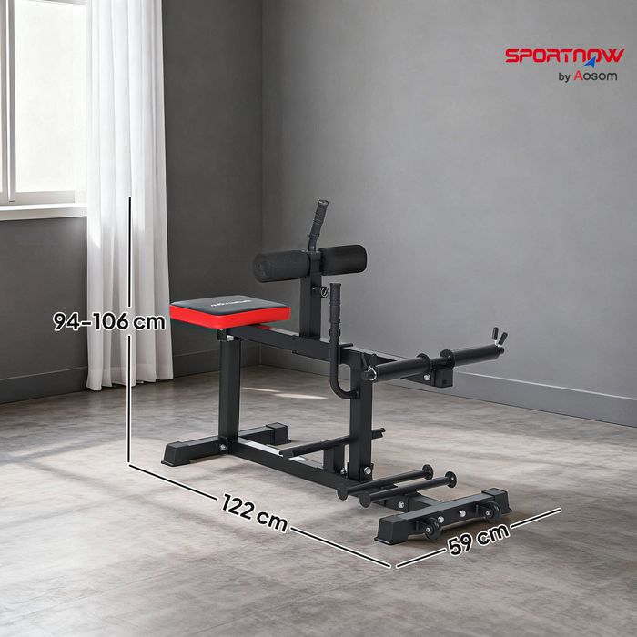 - Gesamtabmessungen zum Beinbeuger: 122Lx59Bx94-106H cm. Belastbarkeit: 150 kg (Benutzer), 100 kg (Gewichtspfosten). Montage erforderlich