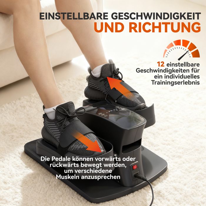- 12 Geschwindigkeiten & Rückwärtsfunktion: Mit 12 wählbaren Geschwindigkeiten und der Fähigkeit des Ellipsentrainers, vorwärts oder rückwärts zu treten, können Sie Ihr Training einfach anpassen, verschiedene Muskelgruppen beanspruchen und bleiben motiviert, egal ob am Schreibtisch oder auf der Couch