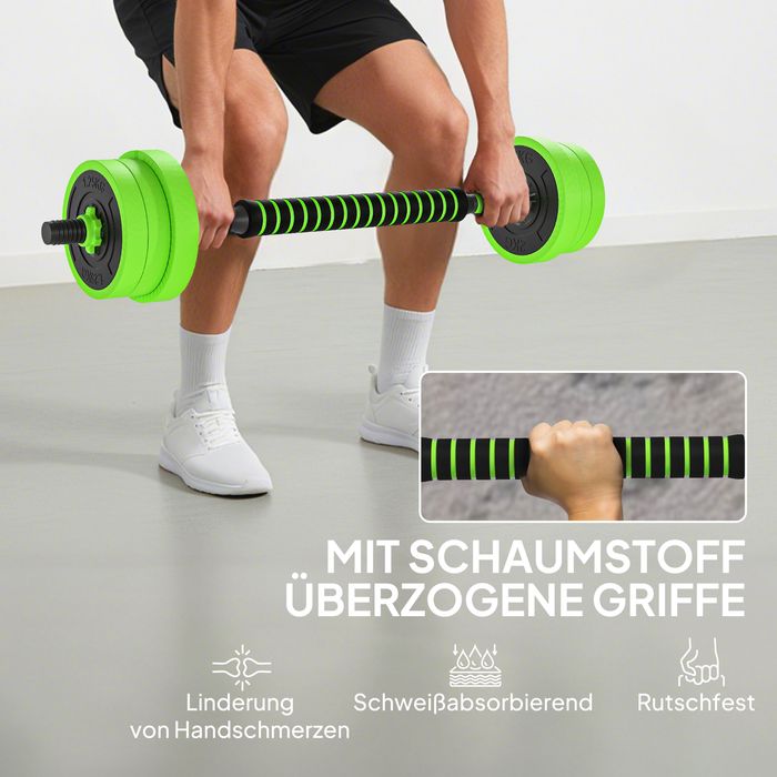 4in1 Hanteln Set 20kg verstellbare Kurzhantel & Langhantel Kettlebell Liegestützgriffe Grün