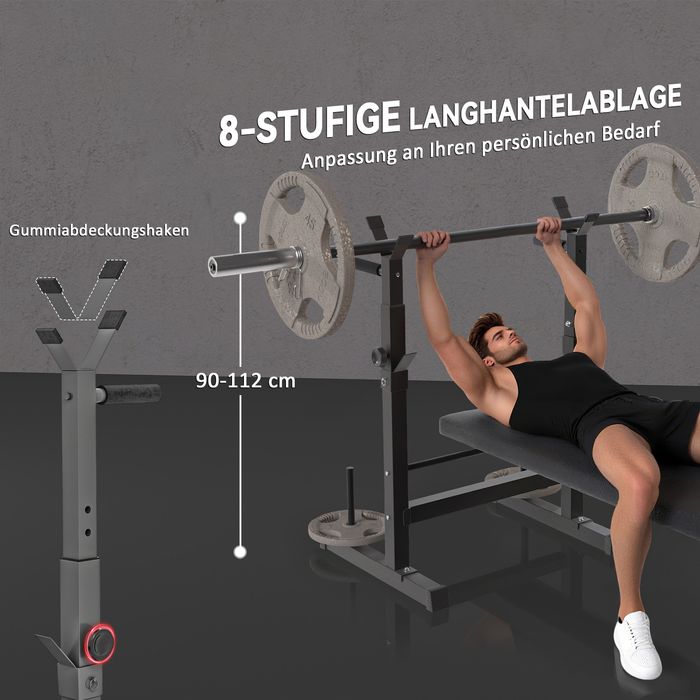 - Verstellbarer Hantelständer: Der 8-fach höhenverstellbare Hantelständer der Langhantel Bank(90-112 cm) mit Klimmzuggriffen erfüllt alle Ihre Trainingsanforderungen und sorgt für ergonomische und optimale Trainingspositionen.