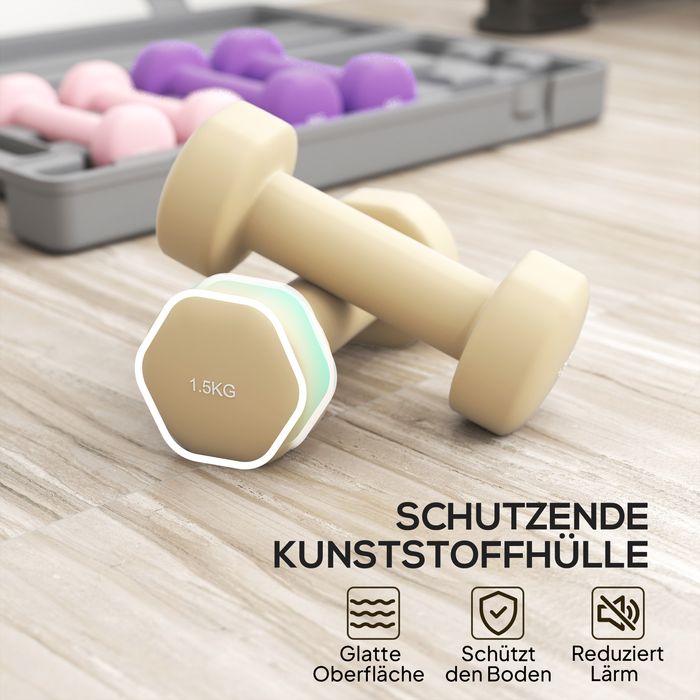- Gewicht: 2 x 0,5 kg, 2 x 1 kg, 2 x 1,5 kg