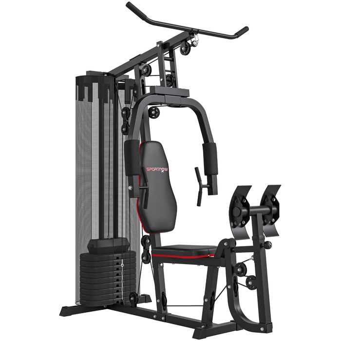Gestalten Sie Ihr eigenes Fitnessstudio in Ihrem Zuhause mit der SPORTNOW Kraftstation, inklusive Gewichten! Es verfügt über eine Hochzugstation, eine duale Bruststation für spezifische Oberkörperübungen und eine stabile Beinpresse. Dieser kompakte Kraftturm mit einem verstärkten Stahlrahmen und 45 kg Gewichtsblöcken bietet anpassbare Einstellungen für jede Erfahrungsstufe und garantiert ein stabiles Trainingserlebnis daheim.