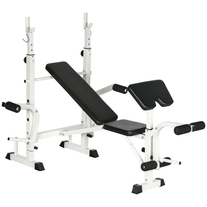 Trainingsbank Hantelbank mit Beinpresse mit Hantelablage Armauflage für Gewichtstraining, Schwarz+Weiss