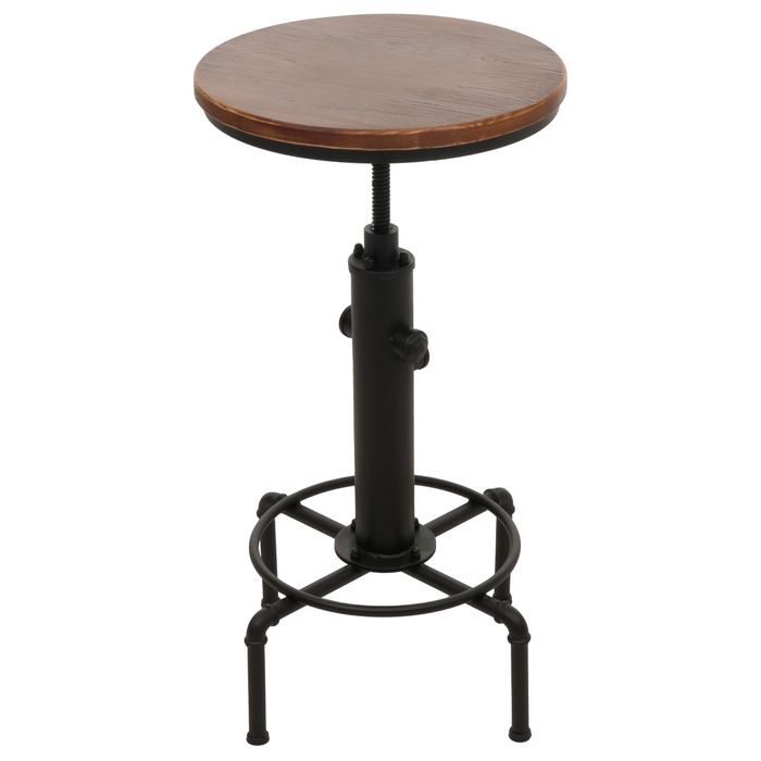 Bartisch HWC-N23, Thekentisch Bistrotisch höhenverstellbar drehbar Fussablage Industrial Eisen Massiv-Holz Ø 50cm - braun