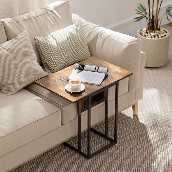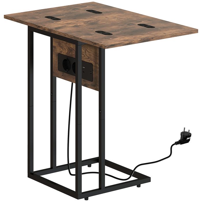 Entdecken Sie den industriellen Beistelltisch, der Ihr Wohnambiente mit integrierter Ladestation und einem klappbaren Tisch, der sich perfekt in jedes Zimmer fügt, aufwertet. Dieser C-förmige Sofa Tisch lässt sich leicht unter Sofa oder Bett schieben – ideal für kleine, gemütliche Ecken. Er dient als bequemer Nachttisch, praktischer Sofa-Partner oder effizienter Arbeitsplatz und passt sich elegant und funktional Ihrem Lebensstil an.