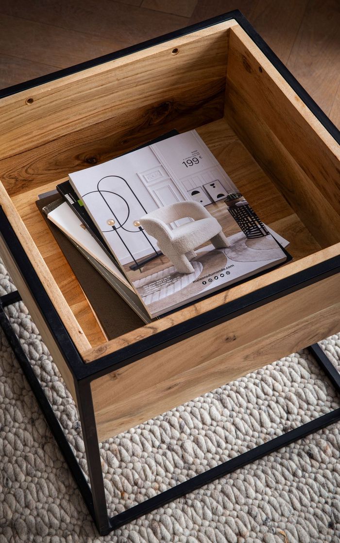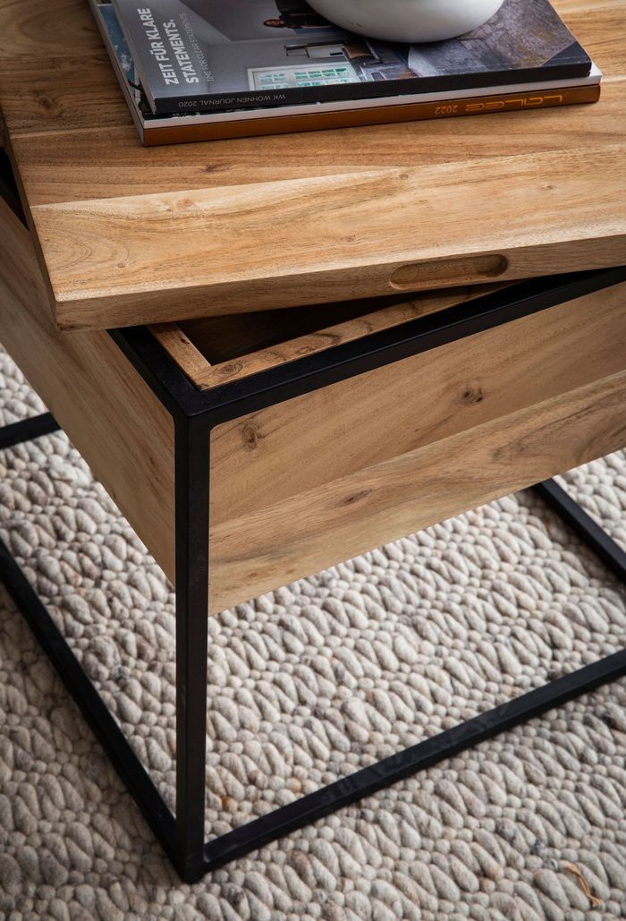 - Tischplatte und Staufach: Akazie Massivholz, mit Klarlack beschichtet