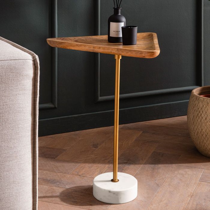 Beistelltisch Massivholz Marmor 45x40 cm Anstelltisch Wohnzimmertisch