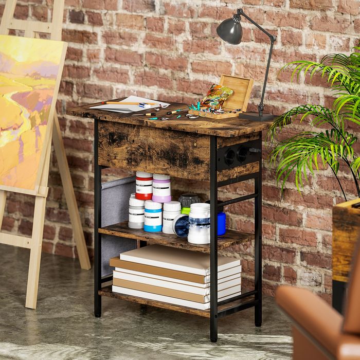 - Alles-in-einem Aufbewahrungslösung: Dieser Beistelltisch bietet zwei offene Regale, ein handliches Taschenfach und eine Aufbewahrung mit klappbarem Deckel, um alltägliche Gegenstände leicht zugänglich zu halten und Ordnung in Ihr Homeoffice oder Schlafzimmer zu bringen.