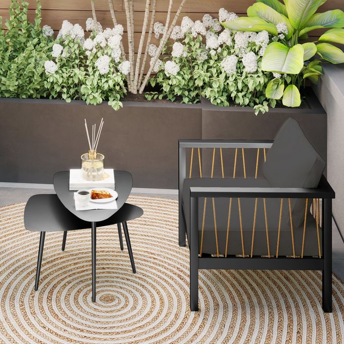 Couchtisch 2er Set, Wetterfest Balkontisch aus Stahl, Beistelltisch im Geometrischem Design Schwarz
