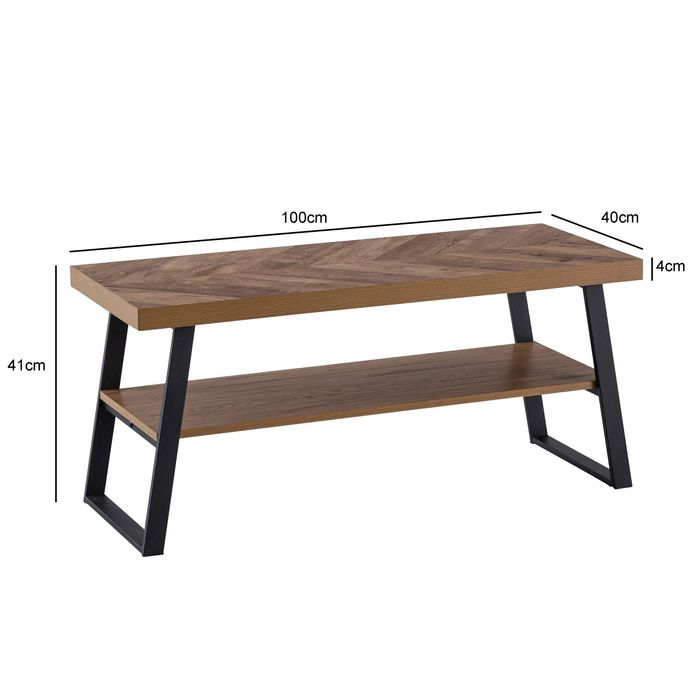 Couchtisch 100 cm Braun Fischgrät Wohnzimmertisch Sofatisch Ablage