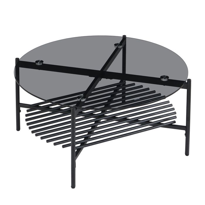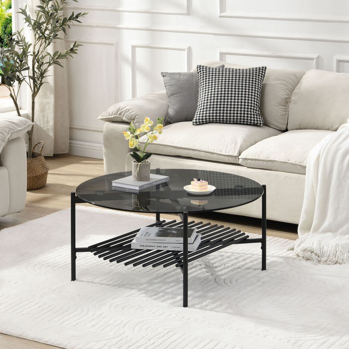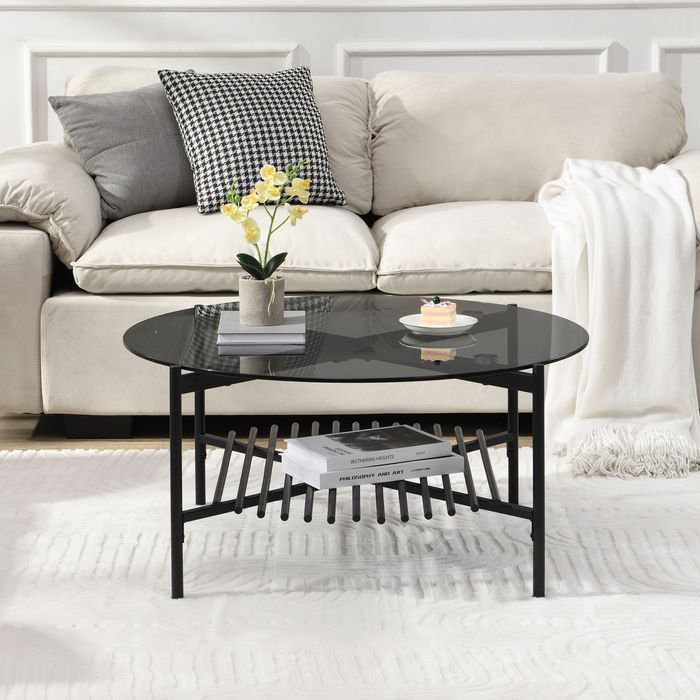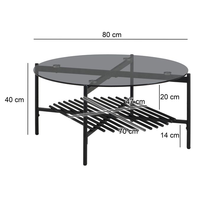 Couchtisch Glas Metall 80x40 cm Schwarz Wohnzimmertisch Sofatisch Rund