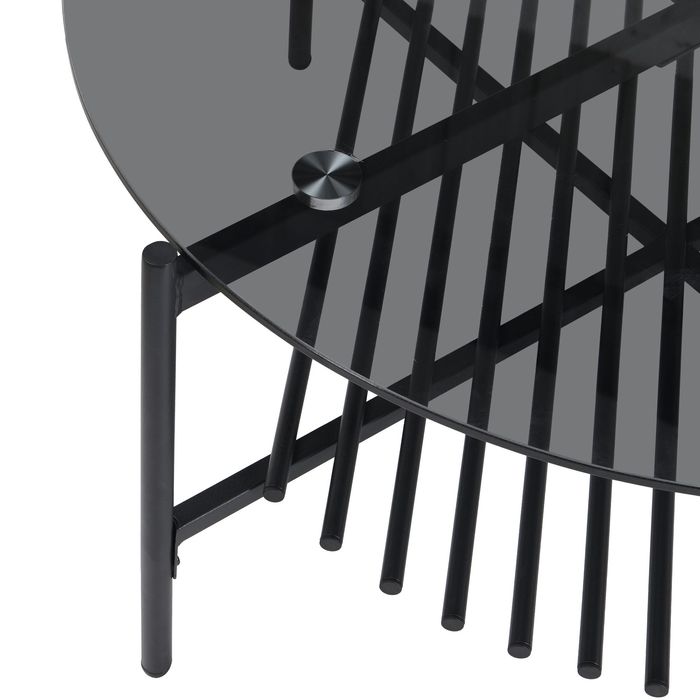 - Tischplatte: dunkel gefärbtes, transparentes Einscheibensicherheitsglas