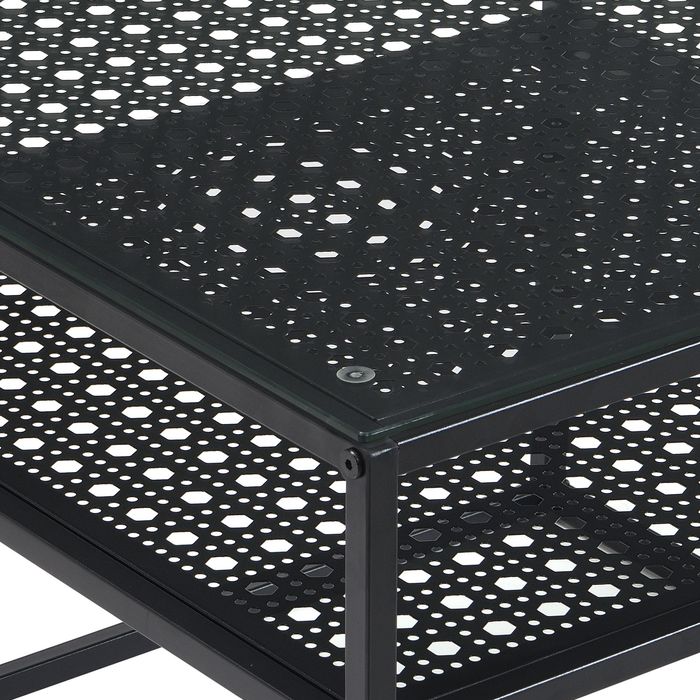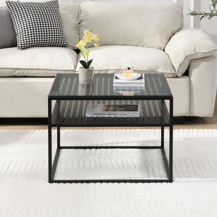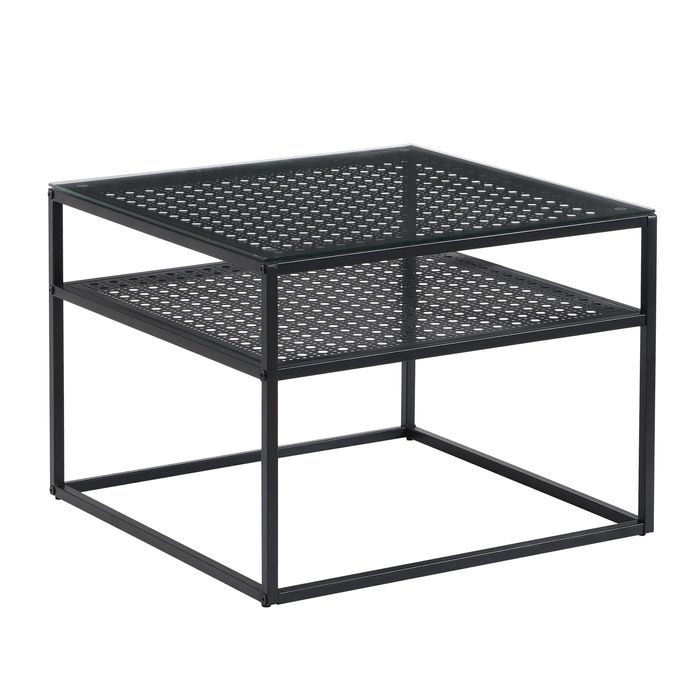 Couchtisch Glas Metall Schwarz 60 cm Quadratisch Wohnzimmertisch Ablage