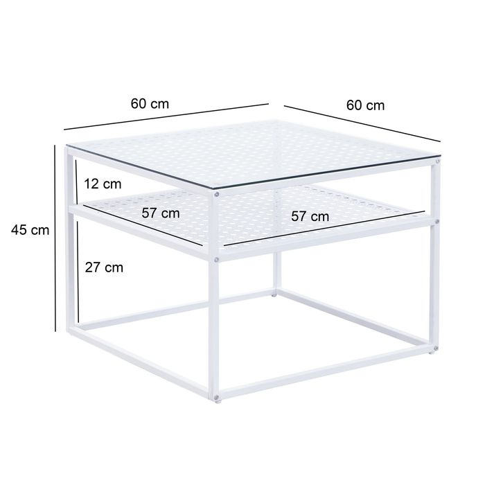 Couchtisch Glas Metall Weiss 60 cm Quadratisch Wohnzimmertisch Ablage
