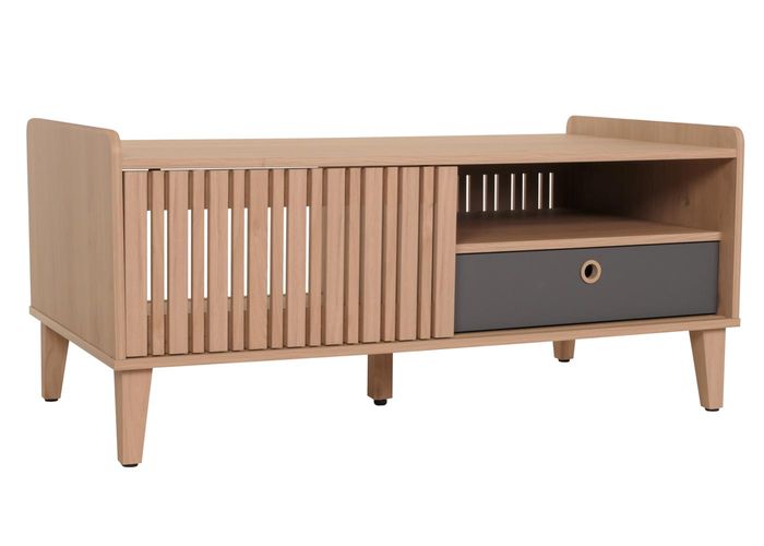 - Ein besonderes Highlight ist die Schiebetüre, die auf einem modernen Schienensystem mit Rollen läuft. Diese smarte Lösung ermöglicht es Ihnen, die Türe sanft und leise zu bewegen und verleiht dem Couchtisch eine moderne Note.