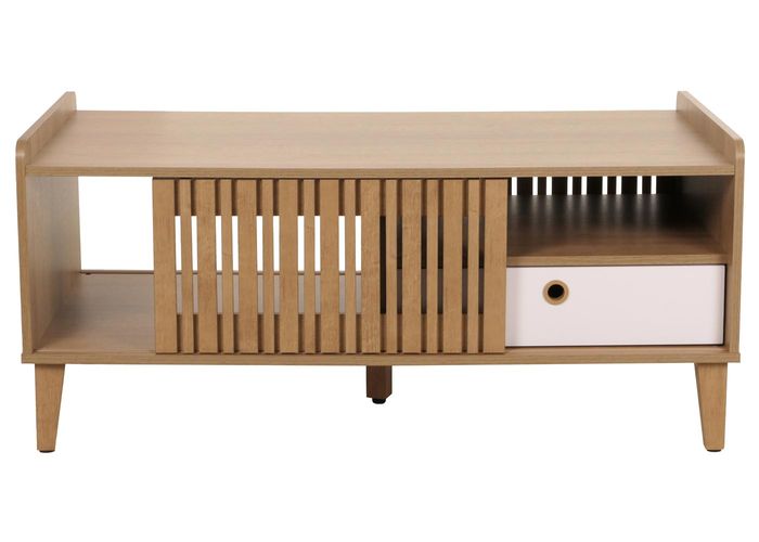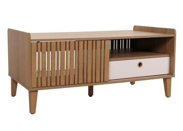 Couchtisch HWC-M48, 52x114x59cm – natur, Schublade weiss
