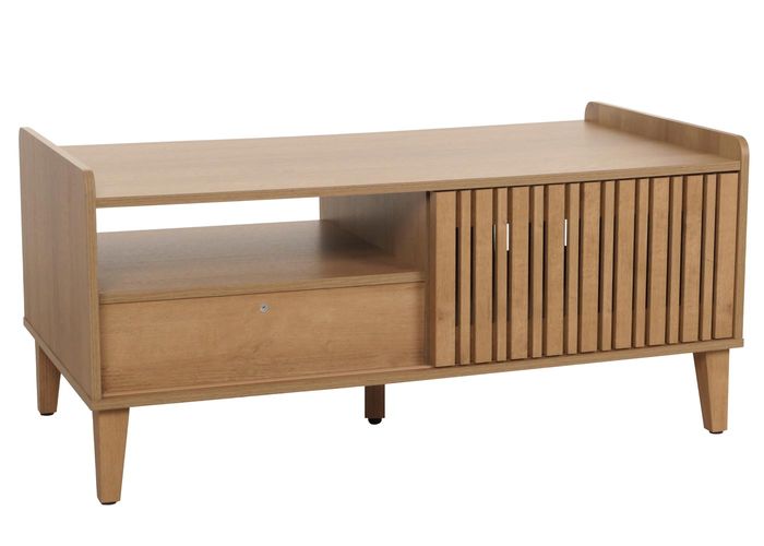 Entdecken Sie die perfekte Kombination aus Stil und Funktionalität mit unserem eleganten Couchtisch aus hochwertigem Mangoholz und robustem MDF. Mit zwei grosszügigen Staufächern und einer geräumigen Schublade bietet er ausreichend Platz, um Ihren Wohnbereich ordentlich zu organisieren. Das integrierte Schiebetürensystem auf Rollen ermöglicht eine mühelose Öffnung und schliesst stilvoll, ohne wertvollen Raum zu beanspruchen. Perfekt ergänzend zu anderen Möbeln der M48 Serie, passt dieses Stück nahtlos in Ihr bestehendes Einrichtungskonzept und schafft eine harmonische Atmosphäre in Ihrem Zuhause. Der robuste Fuss mit höhenverstellbarem Fussbodenschoner gewährleistet nicht nur Stabilität, sondern schützt auch Ihre Böden vor Kratzern und Beschädigungen. Verpassen Sie nicht die Gelegenheit, Ihrem Wohnraum mit diesem multifunktionalen Möbelstück eine praktische und stilvolle Note zu verleihen. Bestellen Sie noch heute und lassen Sie Ihrer Kreativität freien Lauf. Die Lieferung erfolgt ohne Dekoration, was Ihnen die Möglichkeit gibt, dieses Möbelstück ganz nach Ihrem eigenen Geschmack zu personalisieren.