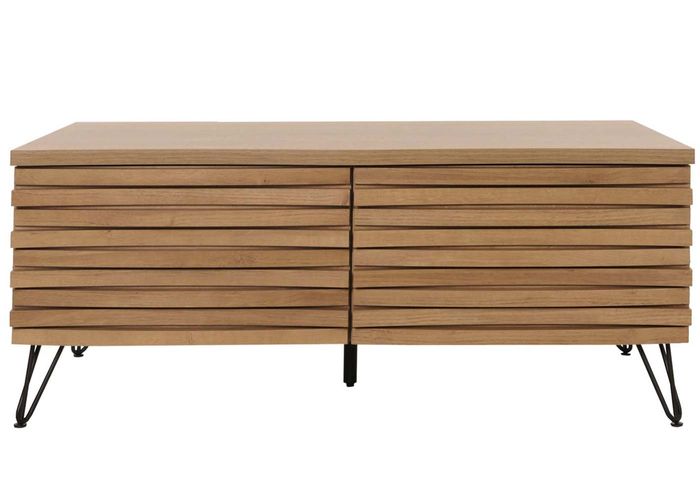 Couchtisch HWC-M49, 3D-Design, MDF Metall 46x110x55cm – natur